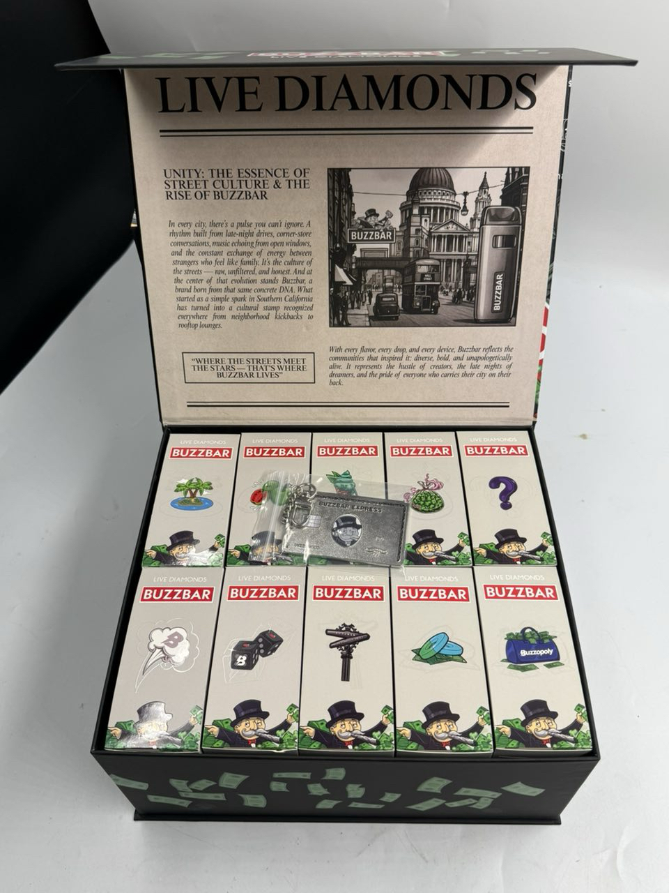 The Monopoly Edition concept is built around choice and endurance. With a 3G capacity, the Monopoly Buzz Bar Disposable is meant to last significantly longer than standard disposables, which makes variety even more important. Flavor fatigue becomes a major issue in high-capacity devices, and Buzzopoly directly addresses this by offering three distinct flavor profiles within one disposable.